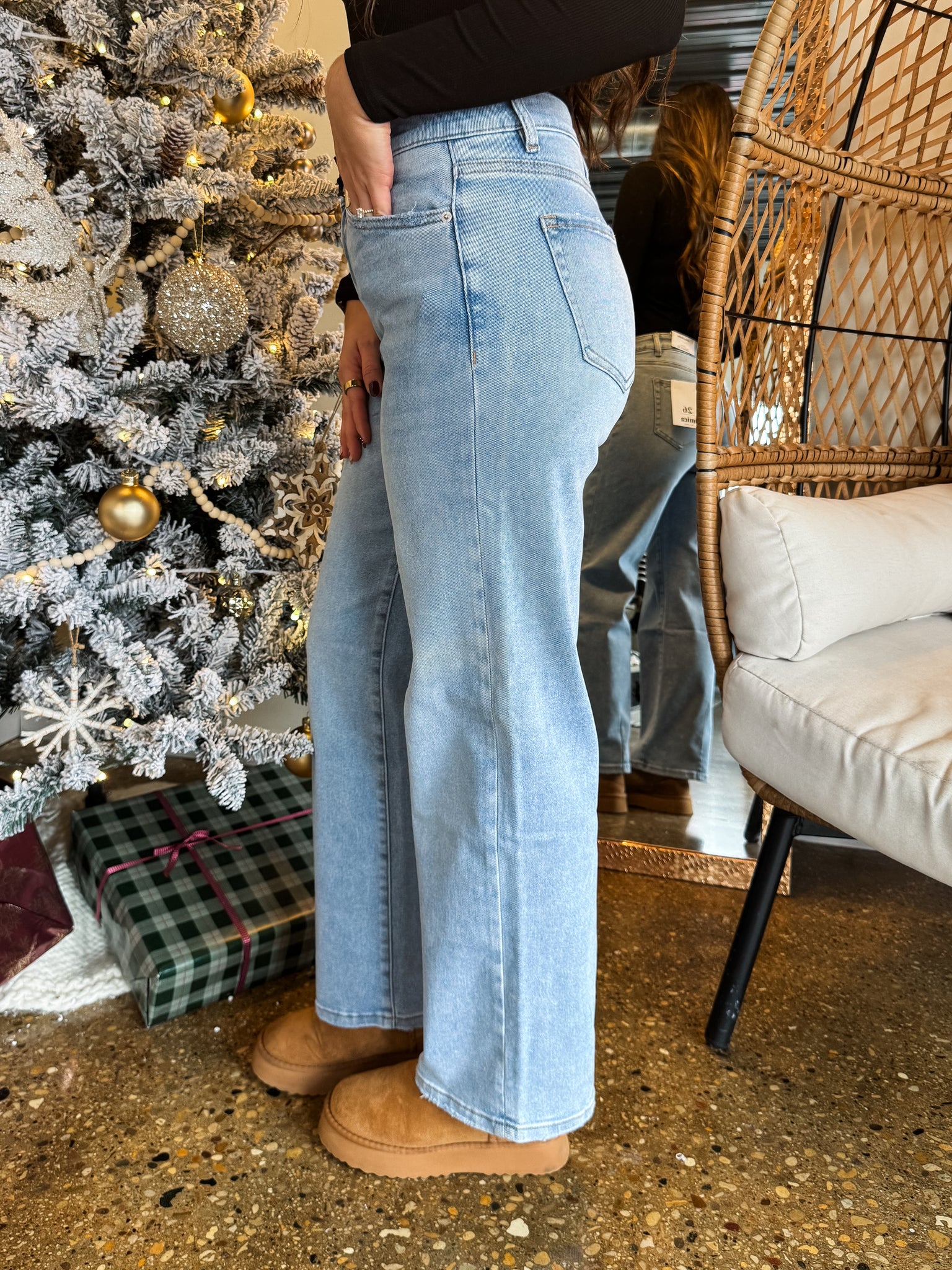 Experience ultimate comfort with JENNA MID RISE LOOSE FIT STRAIGHT LEG-MICA DENIM. The mid-rise, loose fit design paired with a comfortable stretch makes this medium to light wash denim perfect for all-day wear. Achieve a relaxed yet chic look with this versatile and durable piece.